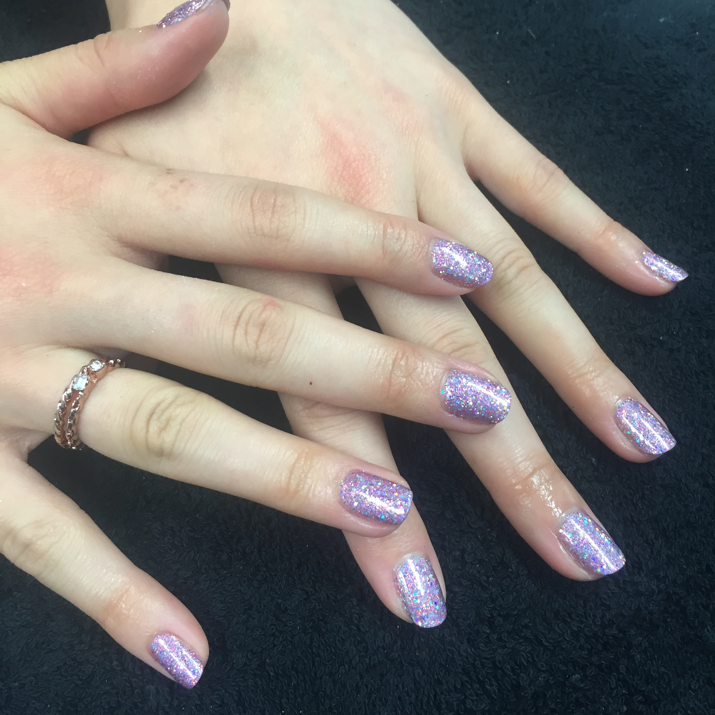 Lush lilac sparkly nails