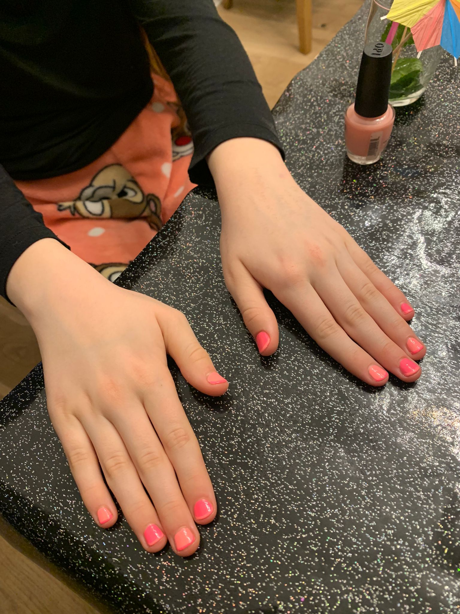 Two weeks ago I was booked for Islas 12th birthday party at her house in Cricklewood, it was a ‘spa’ party and when the girls turned up they were given a party bag with personalised slippers, a headband and other cute bits. I found out later in the day it was also a ‘bring a tray party’ and Isla had given her friends a colour and they each had to bring a tray of food in that colour, needless to say there were a lot of sweets and some very hyper 12-year-olds!!! I was asked to do mini manicures and I said I could do some simple nail art. I was shown a lot of ideas from Pinterest, and I can tell you 12-year-old girls know exactly what they want. They were all so lovely and when I finished they were all hanging out watching a movie and doing each other’s hair and make-up and doing Tik-Tok dances!!
